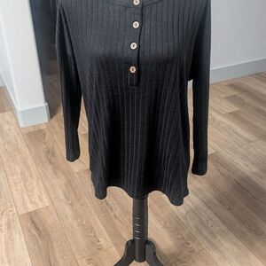 Stylish ribbed blouse with button-down front. Comfortable and versatile. Perfect for any occasion.