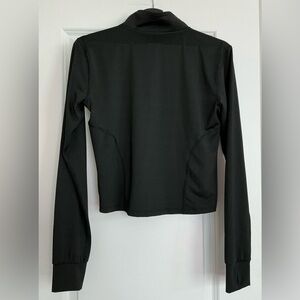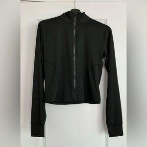 Stylish black jacket with full zip. Ideal for exercise or everyday use. Worn once