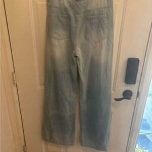 These Amazon jeans feature a stylish blue hue with a wide-leg flare design, offering a relaxed and flowing silhouette. The denim has a vintage-inspired wash with natural fading, perfect for a casual, bohemian look.