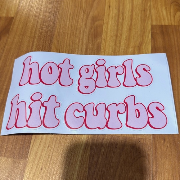 Car sticker with vibrant pink text. Ideal for adding personality to your belongings. Brand new never used.