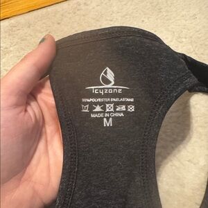 Stylish charcoal tank with racerback design. Ideal for fitness or casual outings.