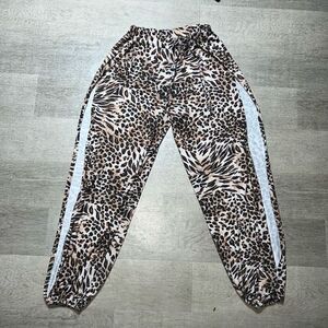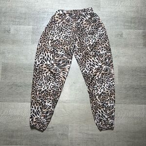 Amazon, Cheetah Print Wide Leg Jogger Pants with Side Slits, Women’s Small