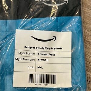 Amazon reflective delivery driver vest in blue and black. Safety vest with pockets and zip up front. Mesh panel sides