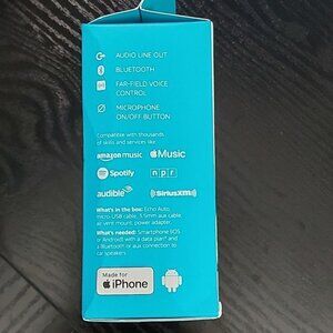 • Connects to the Alexa app on your phone and plays through your car's speakers via auxiliary input or your smartphone's Bluetooth connection