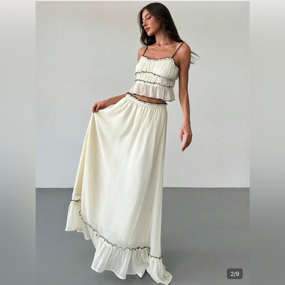 Step out in style with this elegant cream ruffle set. Perfect for any occasion, this dress features delicate ruffles for a touch of sophistication.