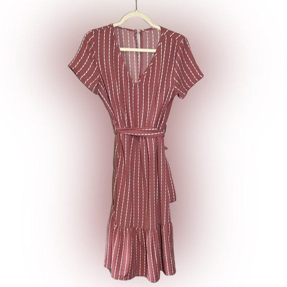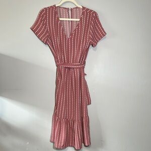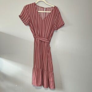 Amazon Elegant Striped Pinkish/Red Dress with Tie Waist Vneck Size Medium