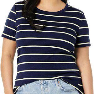 Amazon Essential Basic T-Shirt Basic, summer, stripes, travel, vacation, contemporary, cozy, soft, casual, beach, quality material, navy, white, yellow