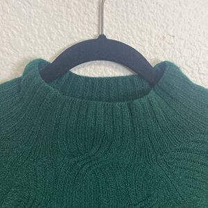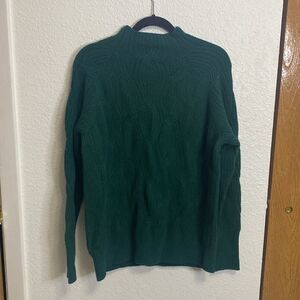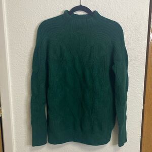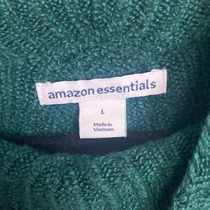 Amazon essentials women’s size large green knit sweater super soft to the touch, cotton polyester acrylic and elastin blend. Lots of stretch perfect color for Christmas