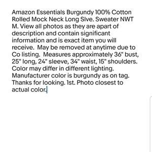 Amazon Essentials 100% Cotton Rolled Mock Neck Burgundy Sweater New W/Tags Sz.M