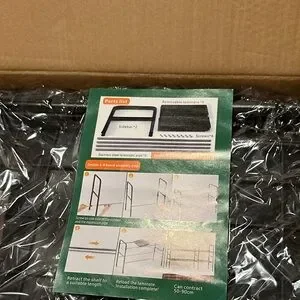 Durable black storage rack. Easy assembly. Ideal for home organization.