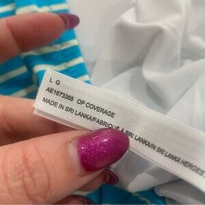 Amazon Essentials Blue White Striped One Piece Swimsuit NWT Size Large