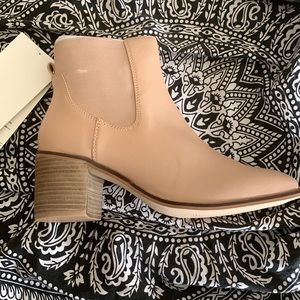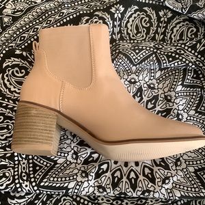 NWT vegan leather boots in Latte color. Have not been worn or tried on. Includes box