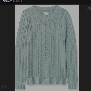Amazon Essentials Cable Crew Neck Sweater in Sage Blue Green