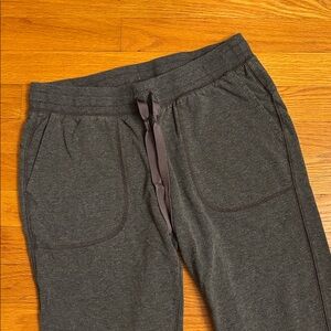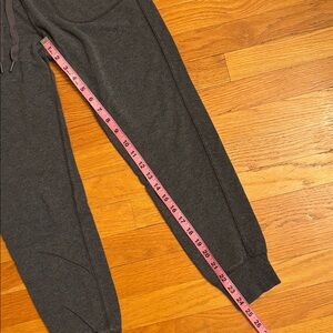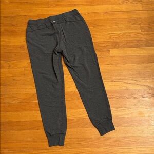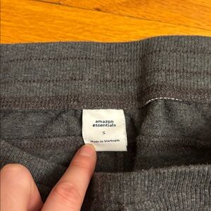 Stretchy jogger pants from Amazon Essentials! Women’s size small. Has elastic waistband with drawstring. Charcoal gray dark grey color. Two front pockets. Cotton / viscose / elastane blend. Cozy, comfy perfect for indoor lounging or outdoor gym / workout / casual errands brunch wear