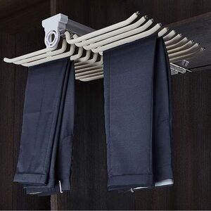 Streamline your closet with this cream adjustable hanger rack. Ideal for organizing pants and accessories.