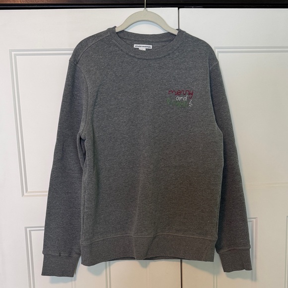 Merry and bright hand embroidered Christmas sweatshirt. Amazon unisex size medium. Comfortable and versatile crewneck. Ideal for layering or wearing alone.