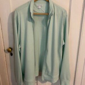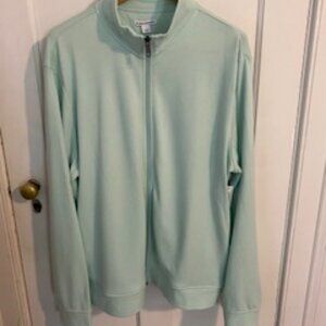 NWT Amazon Essentials full-zip fleece sweatshirt with pockets. Aqua color no longer available at Amazon. Brand new. Size XL
