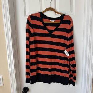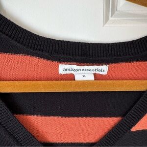 Amazon Essentials Long-Sleeve V-Neck Sweater - Black Orange Striped - XL -NWT
