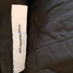 Fitted through hip and thigh, with tapered leg. Sits below the waist