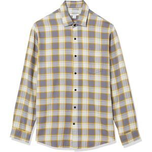 Amazon Essentials Men's Long-Sleeve Flannel Shirt Yellow and Gray XS