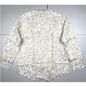 Amazon Essentials Men's Medium Brown Natural Beige Leaf Print Button Down Collar Regular Fit Long Sleeve Linen Cotton Shirt Vacation Tropical Top with Front Pocket