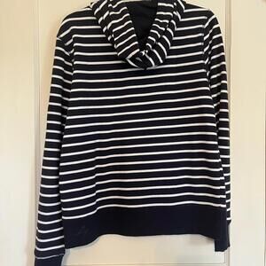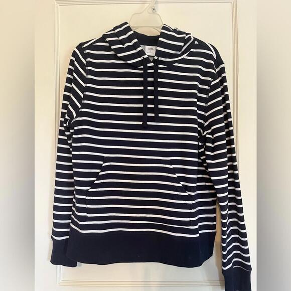 Casual navy and white striped hoodie. Features a comfortable fit. Ideal for everyday wear.