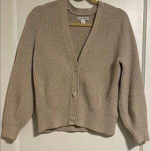 Amazon Essentials Ribbed V-Neck Button Cardigan - Beige