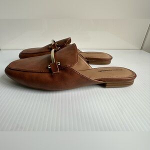 Amazon Essentials Slip on Mules Loafers Brown Gold Buckle Details Size 8.5