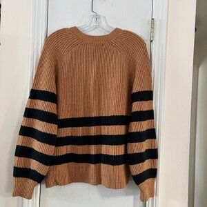Amazon Essentials cardigan. Camel/tan with black stripes. Size S. In excellent used condition; from a smoke-free, dog-friendly home.