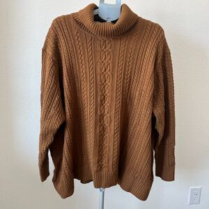 Amazon Essentials Sweater Women's 6X Brown Cotton Cable Knit Turtleneck Pullover