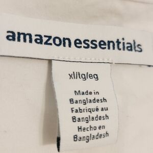 Women's classic, white, long sleeve button-down shirt by Amazon Essentials, size XL. Buttons on wrists; extra buttons on inside tag. Front chest pocket. 100% cotton. Shirt is new with tags; no flaws.