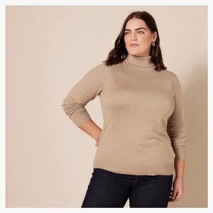 Gently used. Maybe wore 3 times. Size Women’s XL. I’ve lost weight and it’s too big. It’s a great basic piece! Camel color. Turtleneck. Light weight. Minor pilling under arm. That can be removed with a fabric shaver.