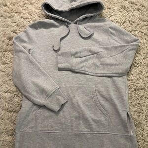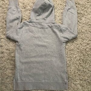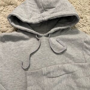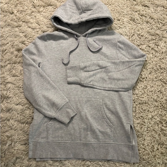 Soft and cozy gray hoodie. Ideal for casual wear. Features a drawstring hood and front pocket.