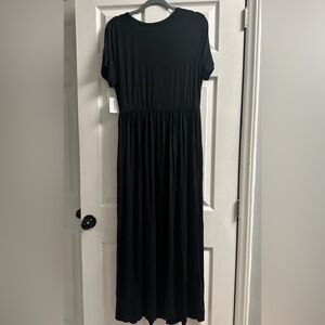 DETAILS: Easy pull-on dress for all-day comfort. Features a gathered waist creating a flattering fit, scoop-neck, short sleeves, and the perfect maxi length.