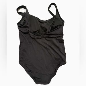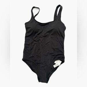 Sleek black one-piece swimsuit. Perfect for the beach or pool.