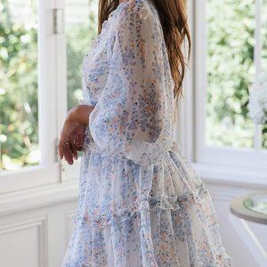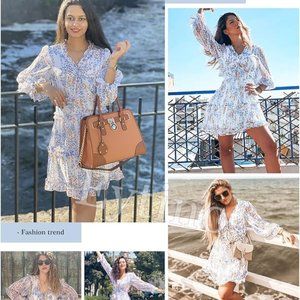 Amazon Eytino Women Bohemian Floral Printed Deep V Neck Long Sleeve Mini Dress M