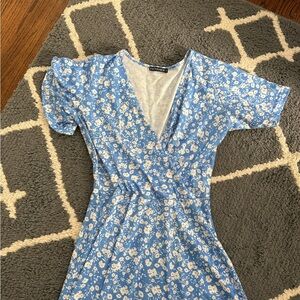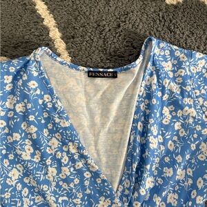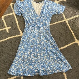 Amazon Floral Short Sleeve Wrap V Neck A-Line Midi Dress