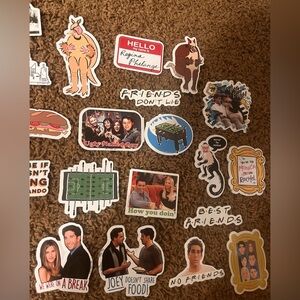 Collection of Friends-themed stickers. Includes iconic quotes and images. Great for fans. 27 pieces.