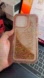 Shimmering gold case with glitter design. Offers style and protection. For iPhone 15 pro max