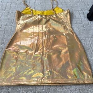 Shiny gold mini dress. Sleek and stylish. Perfect for a night out.