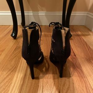 Purchased off amazon Trendy lace up / zipper heel Size 6 Never worn Comfortable Black faux suede