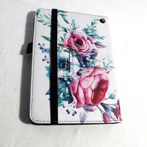 VORI Case for Amazon Kindle Fire HD 8 Tablet & 8 Plus Tablet(12th Generation/10th Generation, 2024/2022/2020 Release), Slim Vegan Leather Folding Stand Cover with Auto Wake/Sleep, Peony