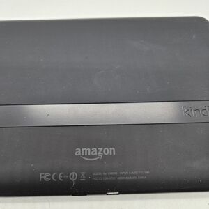 Kindle Fire HD 7" in a gray faux leather Belkin case that opens like a book, or can be used to stand your Kindle up on its side. Has been factory reset. Charges up and holds a charge. In good condition. Does not come with a charging cable.