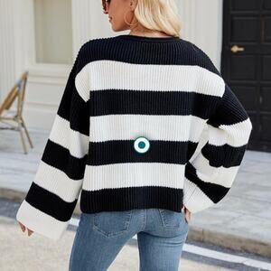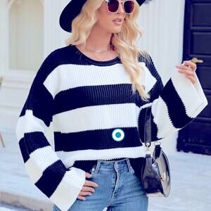 Amazon LAMLUUCK Black and White Striped Sweater. Size XL. NWOT