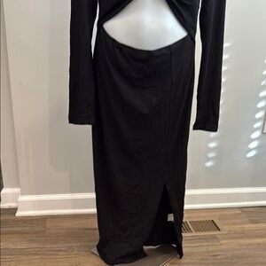 Amazon Large Elegant Black Cut-Out Maxi Dress with Slit
