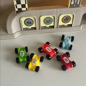 Dynamic racing ramp with vibrant tracks. Includes colorful cars for thrilling races.