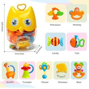 Amazon rattle toy set with storage owl. Educational toy for toddlers. Gently used in great condition. Played by one child. Comes from a smoke free and pet free home.