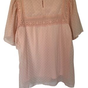 Amazon Pink Flutter Sleeve Blouse with Bib Collar