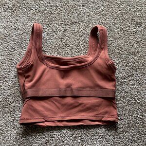 Built in bra. Seam is slightly coming apart on the inside but it doesn't affect function!