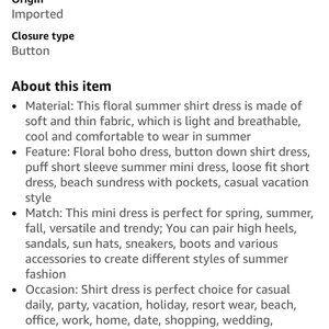 Amazon Wenrine Women's Button-Down Shirt Dress with Puff Sleeves Size M SO CUTE!